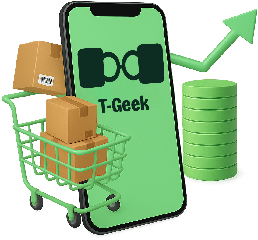 A T‑Geek cuida da produção e entrega. Você lucra.